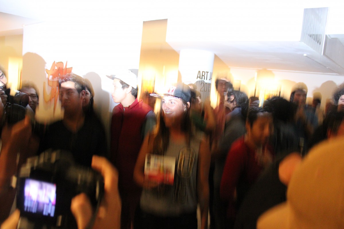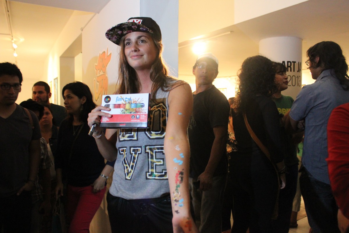 The heartwarming pictures each artist took with their family and friends indicated that this was an intimate affair, even for the seasoned artists. As each artist finished and signed their work, the eager crowd gathered in the gallery to hear the winner anounced. Anticipation was pulsating through the crowd and cameras were clicking incessantly. Both prizes were awarded to the only two girls in the competition, with Vitaminas taking home second place and Caro Paz coming out the victor. As she posed for the cameras, onlookers stayed in the gallery for another look at the outstanding art that surrounded them while familiar songs played in the background. While no one predict what the next round of artists will produce, one thing is clear: I will certainly attend the next Art Jam.