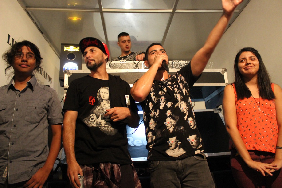 All of the artists had a distinct style and unique process that you could see in the first stroke. The artist known as Fog went to work of the tedious task of making concentrated dots. Two hours later, the guests were awed by the honest and intricate portrayal of a human heart with several narrow eyes breaking through a brick wall. Caro Paz, on the other hand, began her work like a race horse who knows the first leaps give you a starting advantage, making bold lines with a black marker to form a lion’s face and using the rest of the time to layer colors and intricate designs into the face. Then she took out her bold black marker to spell the word, “Libérate,” below the lion, as if the word was its roar. The only other girl in the competition was a young sweet looking girl who calls herself Vitaminas. She drew a whimsical fairy warrior girl attached to a bird. Lama, an older man than the rest, began his work by making black diagonal lines across the page and ended with an elaborate comic strip that told a beautiful story about a very sad woman. Other artists made an anthropomorphic double decker bus and a grinning hillbilly.