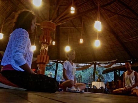 Sesión de meditación a cargo de la organización Tailandesa “Peace Revolution”, durante la I edición del programa de artistas en residencia del MCA en San Ramón, Perú. Enero, 2015. Cortesía de © Machaqmara Center for the Arts. Fotografía: Valeria Tapia