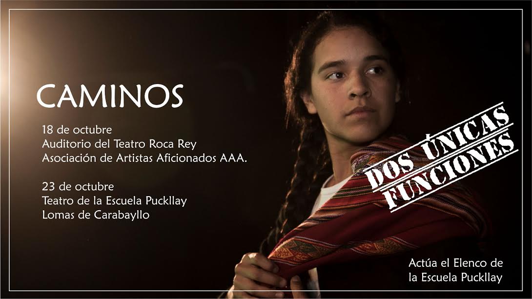 La Escuela Puckllay presenta la obra teatral "Caminos" en la Asociación de Artistas Aficionados y en Lomas de Carabayllo. Ambas funciones son pro-fondos con el objetivo de cubrir parte de los costos del viaje de Puckllay a Brasil, para participar en el intercambio pedagógico cultural del Proyecto Mundo.