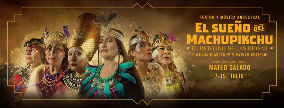 [NOTA DE PRENSA] El Centro Cultural Nosotros con el auspicio del Ministerio de  Cultura, Complejo Arqueológico Monumental Mateo Salado y Proyecto Qhapaq Ñan presentan "EL SUEÑO DEL MACHUPIKCHU”… El retorno de las diosas, con las excelentes actrices: Helena Huambos, Rebeca Ráez, Flor Castillo, Antonieta Pari, Pilar Ochoa, Giancarla Saavedra y coro el actoral: Rosario Gamarra, Sandra Castro, Tiano Gayoso, Celia Retuerto y Eduardo Miasta.  Acompañados del ensamble de música ancestral en vivo compuesta por violín, arpa, quenas, zampoñas y cantos. Entradas a la venta en Teleticket, Atrápalo, al correo suenosmachupikchu@gmail.com y en la boletería del Complejo Arqueológico Mateo Salado en los días de función.