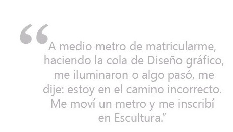 Cuando tuve que pasar al tercer año, es decir a la especialidad, noté que mis mejores notas estaban en escultura. A medio metro de matricularme, haciendo la cola de diseño gráfico, me iluminaron o algo pasó, me dije: estoy en el camino incorrecto. Me moví un metro y me inscribí en escultura. Así es como empecé mi carrera de escultura en la universidad. Ya dentro de la especialidad, con mucho esfuerzo y dedicación, logré terminar como el primer puesto de la promoción.
