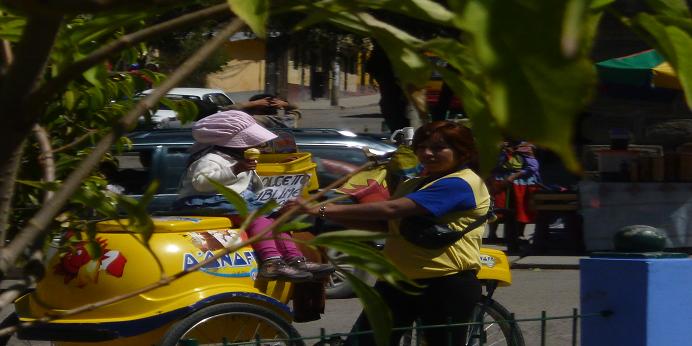 Foto 1: La madre y su hija vendiendo helados. (2014). Jr. Quinua en el parque Maria Parado de Bellido/ Fotógrafo Karen. Reseña: En esta foto se aprecia como la mujer ayacuchana trata de salir adelante con su hija, sin colocarse limites.