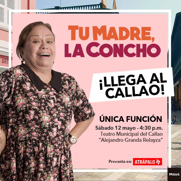 “Tu madre, la Concho” se presentará el próximo sábado 12 de mayo a las 4:30 p/m. en el Teatro Municipal del Callao (Jr. Pedro Ruiz 2da. Cdra. S/N - A la altura de la cuadra 2 de la Av. Sáenz Peña).