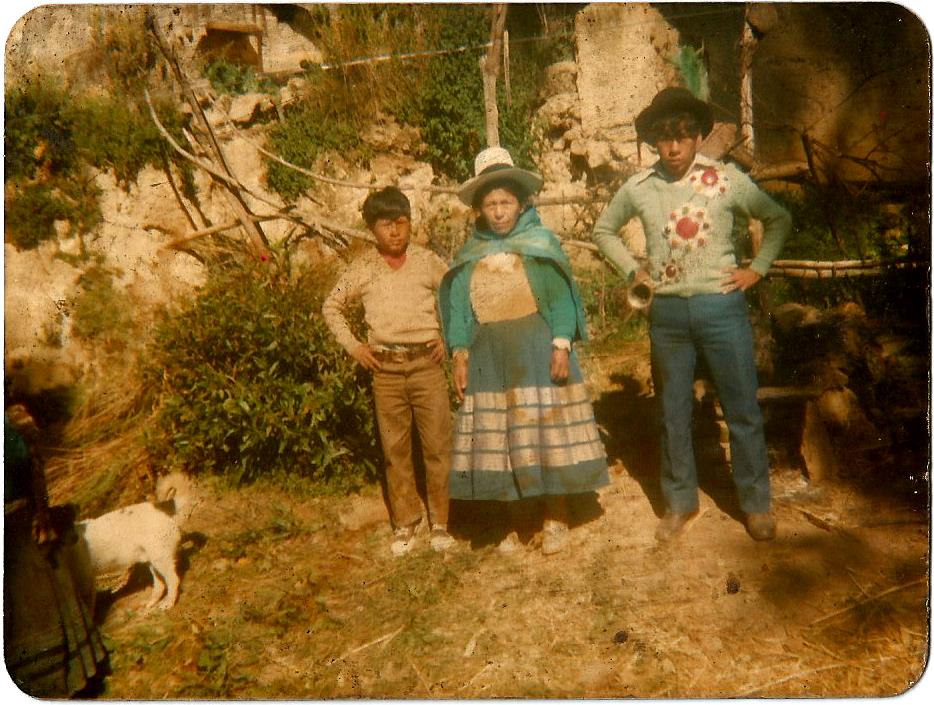 Foto 1. Matrimonio (1966) Lima/Victoria y sus hijos en su matrimonio/Fotógrafo desconocido. Reseña: Esta es una fotografía familiar, una pieza clave para identificar mi identidad que fue forjada por mi abuela Claudelia hermana mayor del personaje que se esta casando, Esta fotografía es importante , ya que narra el casamiento de mi tía-abuela en Lima. Obligando a sus hermanos a migrar junto a ella por ser la menor y comenzar una nueva etapa, Mi abuela Claudelia a pesar de estar en Lima y ver los cambios en su familia nunca dejo sus costumbres y su identidad. Siempre fue fiel a si misma , a su vestimenta y eso ha sido algo que siempre he valorado. | |  Foto 2. Identidad, creencia y familia. (1970) Lima/Claudelia fiel a sus polleras posa para la foto al lado de sus hermanos y sus pequeños sobrinos/Fotografo desconocido. Reseña: Esta fotografía describe como mi abuela Claudelia al migar a Lima no deja sus polleras, su vestimenta.Sigue siendo fiel consigo misma y sus creencias, esta fotografía me punza,es parte de mi y de las raíces que mi abuela nunca quizò que olvidara, a pesar de haber nacido en Lima y vivir en ella. | |  Foto 3. Mamà Delia. (1978). Tapùc- Cerro de Pasco/Claudelia y sus hijos en el corral de la casa/Fotógrafo desconocido. Reseña: Esta fotografía muestra a mi abuela al lado se su hijo menor que vendría a ser mi padre y su hijo mayor que vendría a ser mi tío. Reflejando mis raíces, mi identidad, que fue formada por mi abuela, compartiendo conmigo la cosmovisión andina y sobre todo a ser fiel con uno mismo, Veo ese ejemplo en ella a pesar de venir a Lima ella mantuvo siempre su identidad y el amor por su pueblo reflejada en su vestimenta, Esa misma vestimenta que la acompaño hasta el día de su muerte. | |