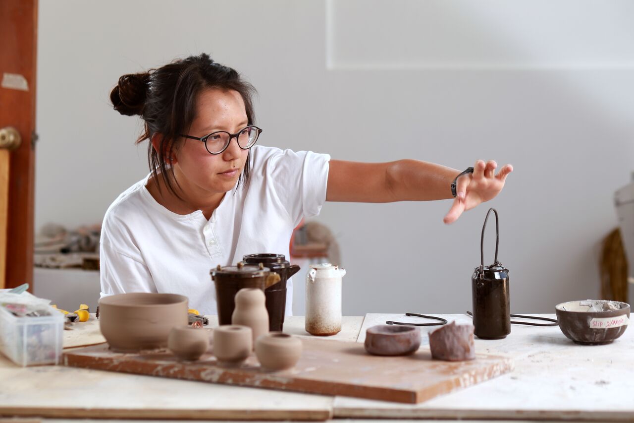 Tami Tokuda recrea el típico daruma, muñeco tradicional japonés, trabajando un conjunto escultórico bajo la idea de la familia, unidad que en la tradición oriental ha permitido sortear todo tipo de retos, incluso la migración. Sofía Arakaki genera un sincretismo cultural y popular. Su propuesta vincula al león protector del hogar, el shiisaa, con los toritos del ande peruano.