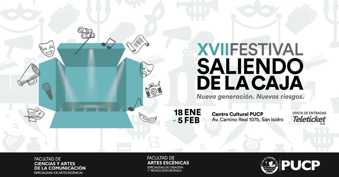[Nota de prensa] El “XVII Festival de Teatro Saliendo de la Caja” se realizará del 18 de enero al 05 de febrero en el CCPUCP (Av. Camino Real 1075, San Isidro), con siete obras teatrales y tres conversatorios sobre la gestión en las artes escénicas.