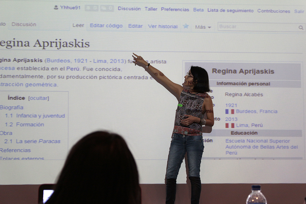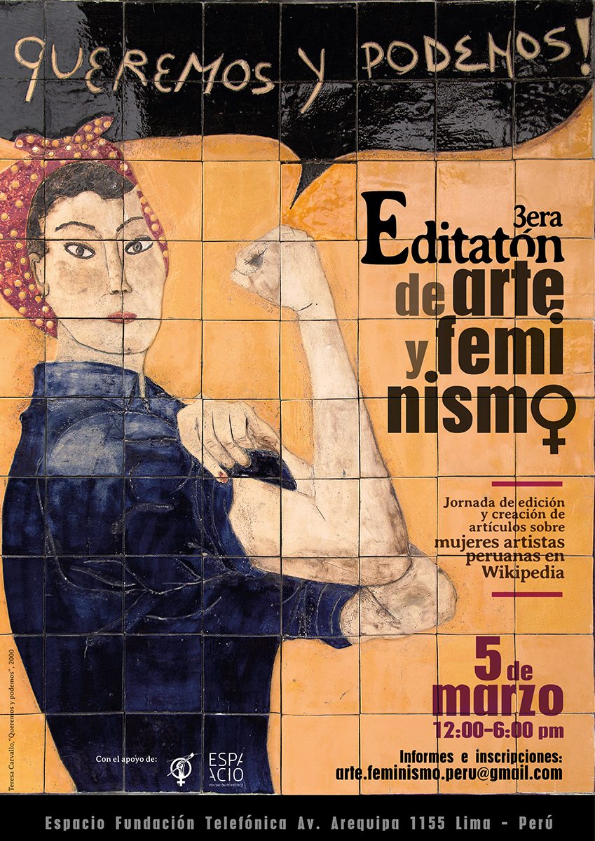 El pasado sábado 5 de marzo se llevó a cabo la III Editatón de Arte y Feminismo en Wikipedia: una jornada de edición, colectiva y simultánea, dedicada a mejorar, traducir y crear nuevos artículos sobre mujeres artistas peruanas en Wikipedia. El evento fue organizado por el grupo de Arte y Feminismo-Lima con apoyo de Espacio Fundación Telefónica, el Centro de documentación “La Casa verde” del Museo de Arte Contemporáneo de Lima y Art+Feminism. Este evento se desarrolló en el marco de la 3ra Editatón Internacional de Arte y Feminismo (3rd International Art+Feminism Wikipedia Edit-a-thon), que este año ha contado con la participación de más de 125 sedes en todo el mundo, siendo Lima, junto a Buenos Aires y Montevideo, una de las tres sedes participantes en Sudamérica.