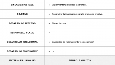 A través de combinaciones de palabras los participantes deberán llegar a la idea para generar una historia. Se deberán elegir las respuestas que puedan desarrollar un tema interesante. El criterio de selección de respuesta debe centrarse en el interés personal del participante por contar la historia.