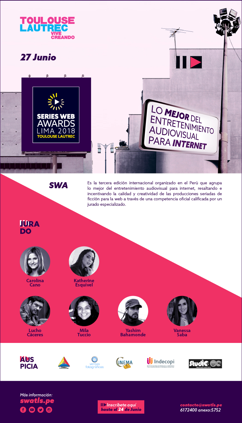 Por tercer año consecutivo el Área de Comunicaciones del Instituto Toulouse Lautrec, organiza este importante evento, que busca premiar a lo mejor del entretenimiento producido y realizado para la web en el Perú y en el extranjero, en un esfuerzo por incentivar a los productores a volcar toda su creatividad en diferentes categorías a ser evaluadas. Desde el 2016 hasta la fecha se incrementa el número de participantes pues cada vez son más las personas que producen contenido web de ficción.