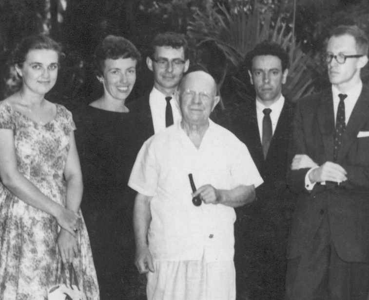 Pau Casals junto a José Carlos Santos (el segundo desde la derecha) y otros asistentes al festival. [Foto: Archivo personal José Carlos Santos]