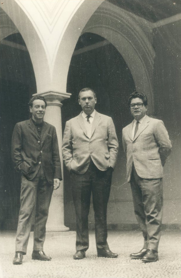 José Carlos Santos (a la izquierda en la foto) junto a otros destacados representantes de la Generación del Cincuenta: Enrique Pinilla (al centro) y Leopoldo La Rosa. [Foto: Cortesía Luis Alvarado]