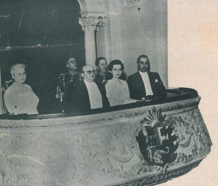 Desde el mismo palco presidencial, el recientemente electo presidente Manuel Prado Ugarteche saluda al público asistente al concierto de la Sinfónica Nacional el 11 de Diciembre de 1939 [Foto: Archivo OSN]