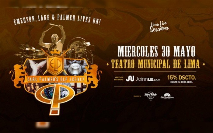 Carl Palmer, considerado uno de los bateristas más respetados e influyentes de todos los tiempos, llegará a Lima con el tour ELP Legacy, este 30 de mayo en el Teatro Municipal de Lima.