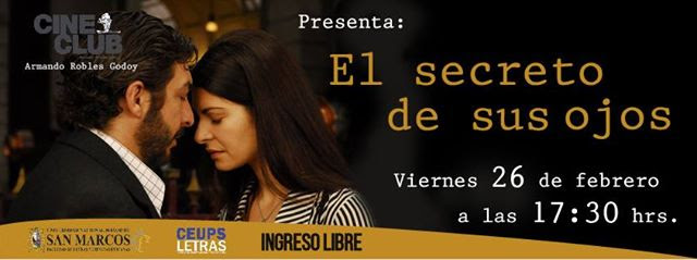 Cine en la terraza: El secreto de sus ojos. Este viernes 26 de febrero en el Cine Club Armando Robles Godoy. Facultad de Letras UNMSM