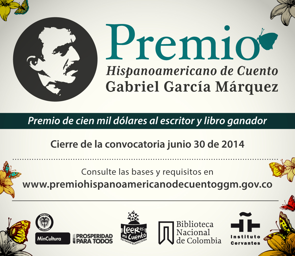El Ministerio de Cultura y la Biblioteca Nacional de Colombia convocan a participar en el Premio Hispanoamericano de Cuento Gabriel García Márquez, el cual se concederá anualmente en colaboración con el Instituto Cervantes de España. Podrán participar editoriales constituidas legalmente en cualquier país del mundo que hayan publicado libros de cuentos impresos en papel, escritos originalmente en español, el año inmediatamente anterior al de la convocatoria.