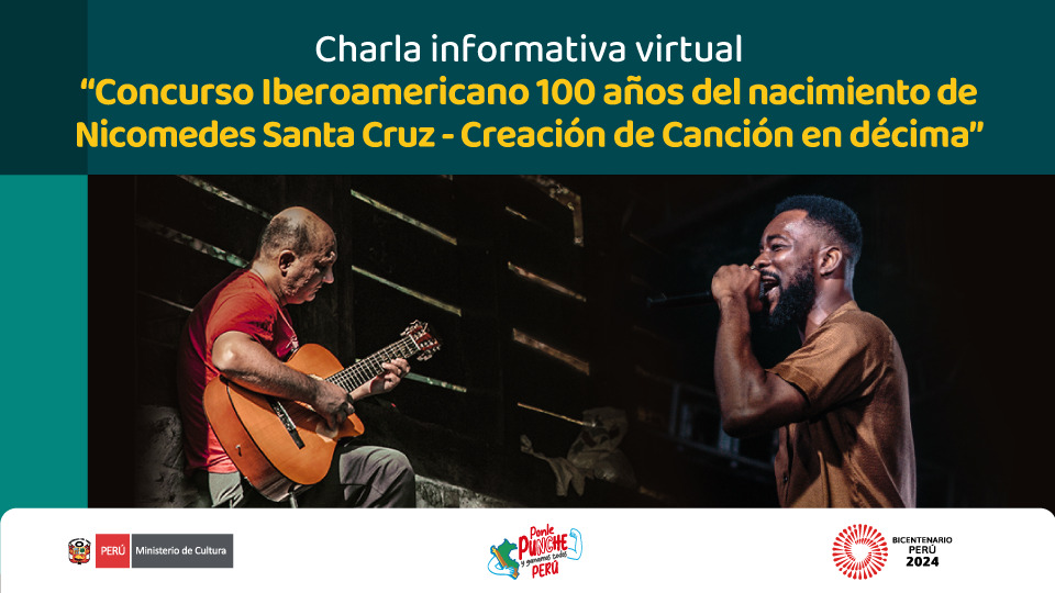 Conmemorando los cien años del nacimiento de uno de los mayores artistas peruanos de la historia y celebrando su vasta obra y su legado inmortal como folclorista y pensador que impulsó la reivindicación de la cultura y los derechos de la comunidad afroperuana, junto con la finalidad de impulsar y promover la creación de música popular para contribuir así a la ampliación del repertorio iberoamericano en sus diferentes géneros e incentivar estas actividades con plena libertad creativa, Ibermúsicas y el Ministerio de Cultura del Perú presentan el “Concurso Iberoamericano 100 años del nacimiento de Nicomedes Santa Cruz - Creación de Canción en décima”. A través de este concurso se premiará la creación de una canción inspirada en la obra musical de Nicomedes Santa Cruz con USD 3,000 (tres mil dólares americanos) y el estreno de la misma en el marco de las conmemoraciones. La fecha límite de postulación es el martes 1 de octubre de 2024.