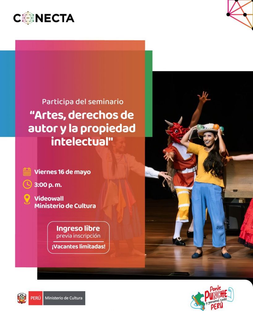 Este 16 de mayo, la Dirección de Artes del Ministerio de Cultura, en el marco de la iniciativa CONECTA, presenta el Seminario “Artes, derecho de autor y la propiedad intelectual”.