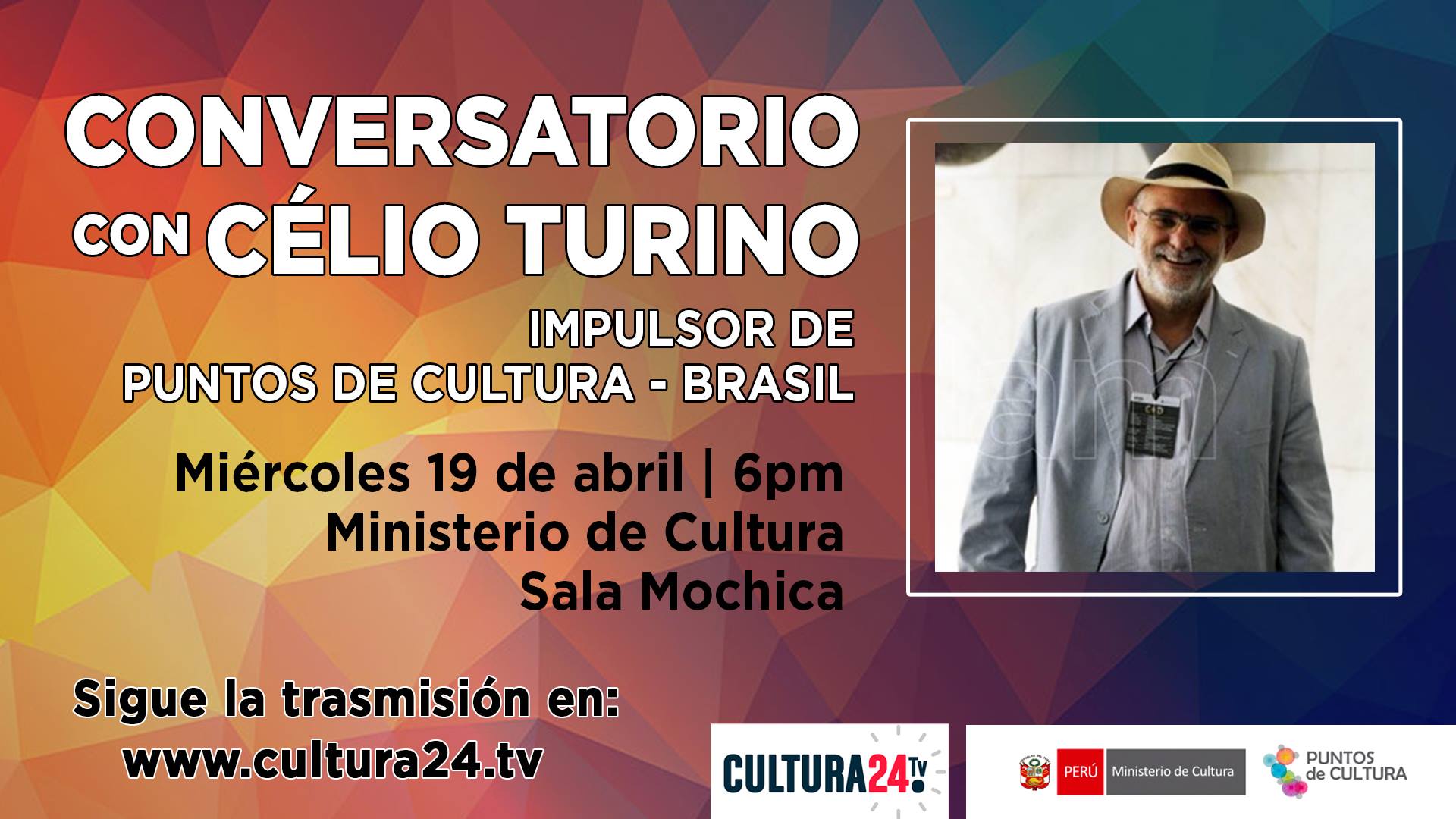 El conversatorio con Célio Turino será un espacio para compartir y reflexionar sobre la situación de nuestro país y los lazos de trabajo colaborativo que se deben seguir forjando. Este miércoles 19 de abril a las 6 p.m. todos los interesados se encuentran invitados a asistir a esta charla en la Sala Mochica del Ministerio de Cultura ¡el ingreso es libre! No olvides que también puedes seguir la trasmisión en vivo por Cultura 24.