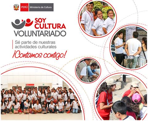 El Ministerio de Cultura Perú abre la convocatoria del Programa Soy Cultura – Voluntariado con el fin de ofrecerte la oportunidad de participar en distintas actividades culturales de acuerdo a la formación, habilidades y competencias de los interesados.