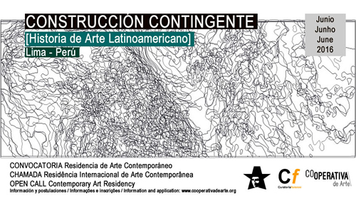 Hasta el 31 de enero se encuentra abierta la convocatoria a la 24va Residencia de Arte Contemporáneo CONSTRUCCIÓN CONTINGENTE [Historia de Arte Latinoamericano]. Organizada por Cooperativa de Arte – Latinoamérica y Curatoría Forense y alojada por el Programa de Residencias para Artistas de Tupac, la residencia se llevará a cabo entre el 15 y el 26 de junio de 2016 en Lima (Perú)