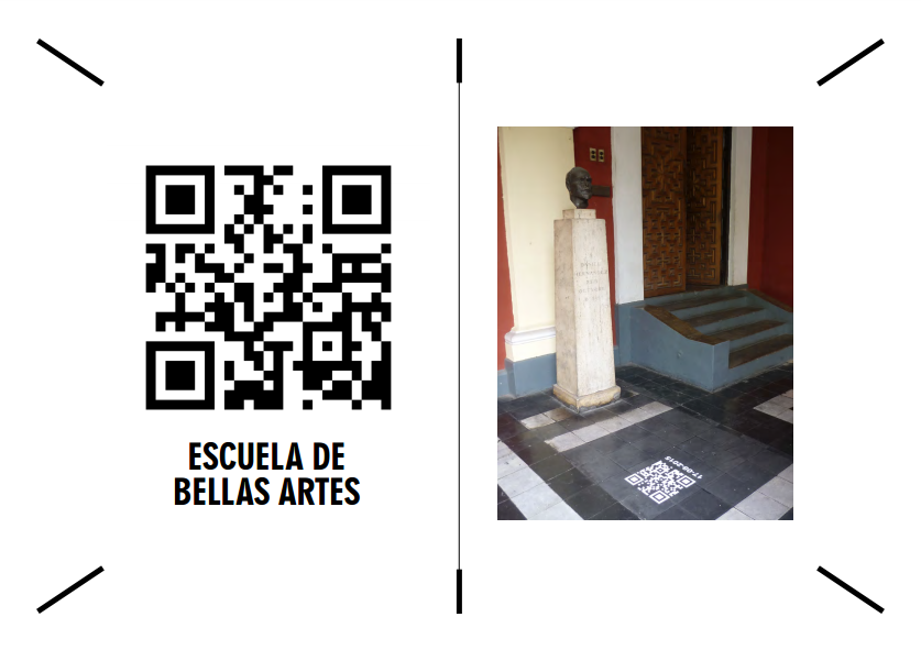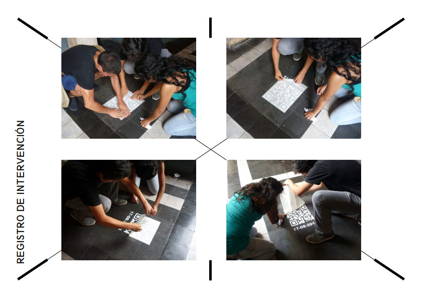 El código QR actúa como la evolución al código de barras usado en la industria para el registro y conteo de productos. El proyecto utiliza el código QR como un medio tecnológico para crear un lenguaje integral de forma visual que pone a prueba intensificar la atención más aguda del ciudadano cuyo propósito viene a poner en debate los espacios públicos intervenidos que poseen aspectos no vistos en un lugar de memoria, así como producir un diálogo entre el espacio físico y el espacio virtual actualizando hechos del pasado con el fin de construir un presente. La ciudad es un lugar de actividad continua, intensa y cambiante en donde circunscriben discursos y significados perdidos en el tiempo formado por circunstancias en las cuales se ha insertado un acontecimiento.