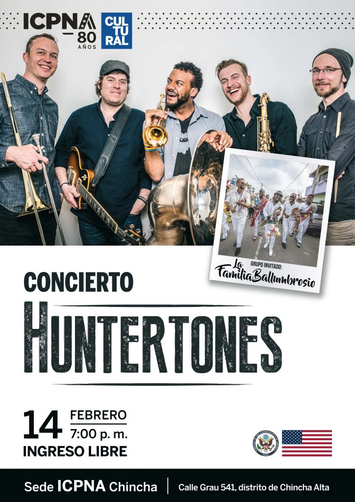 La Embajada de los Estados Unidos en coordinación con el Instituto Cultural Peruano Norteamericano (ICPNA) presentarán en concierto, por primera vez en el país, a los Huntertones, banda estadounidense que fusiona jazz, funk, soul, hip hoy, R&B y rock, quienes estarán acompañados por los hermanos Ballumbrosio.