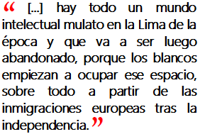 Usualmente se ha olvidado, al ver retratos como el que hay en la Sala Alzedo, que él justamente fue mulato, o pardo para la época. De pronto se le ve desde el futuro, en donde los profesionales en general, por ejemplo los médicos o los músicos, a fines del siglo XIX son todos blancos. Pero a principios del siglo XIX eran principalmente pardos, porque ser pardo era realmente la clase social ascendente de los 1800 a 1820, el período inmediatamente anterior a la independencia. Y eran ellos quienes ocupaban esos puestos de oficio: los médicos, muchos en el ejército también, y los músicos, pintores y escritores, son principalmente pardos. Es muy interesante porque hay todo un mundo intelectual mulato en la Lima de la época y que va a ser luego abandonado, porque los blancos empiezan a ocupar ese espacio, sobre todo a partir de las inmigraciones europeas tras la independencia.