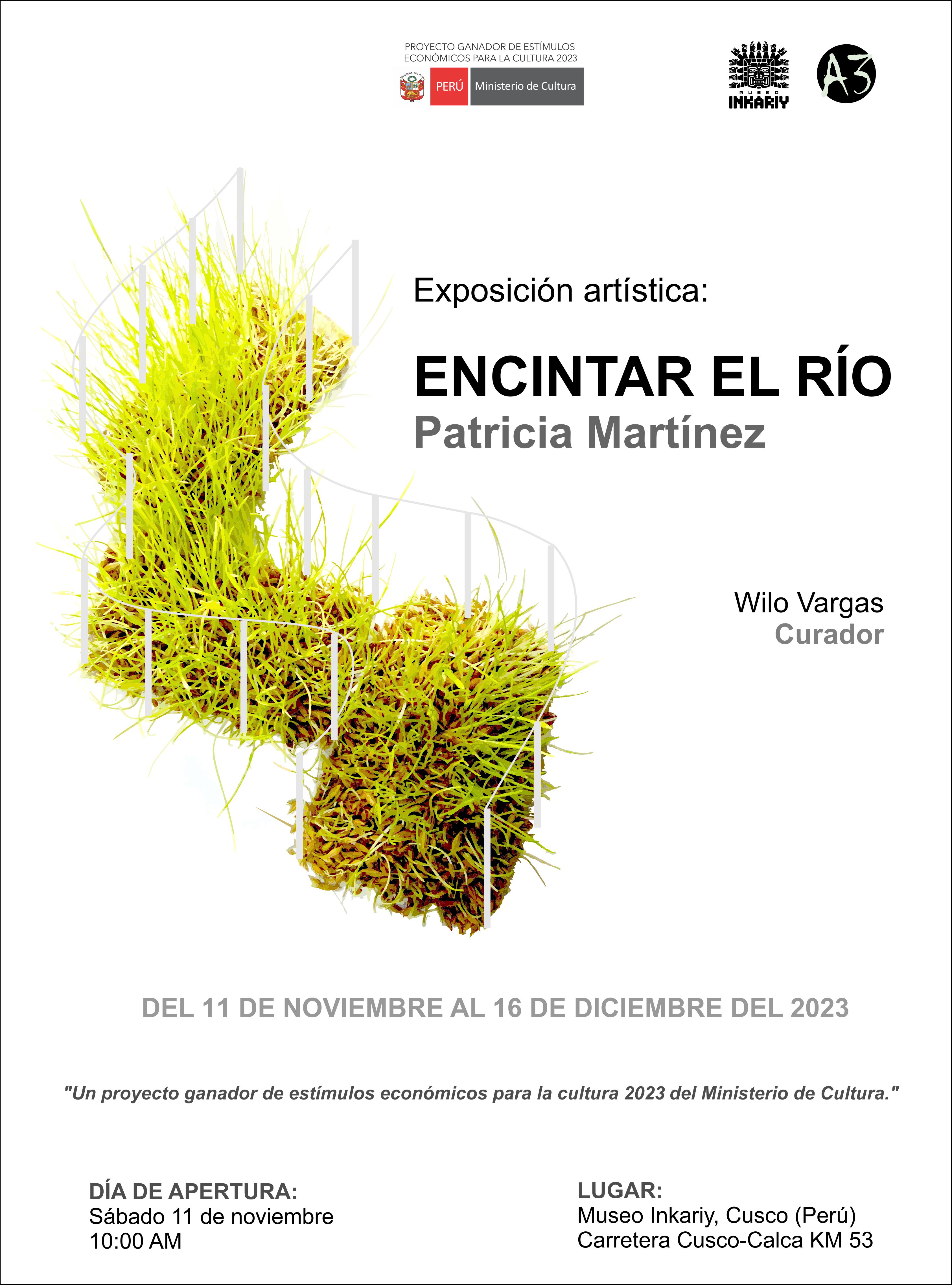 Exposición "Encintar el Río", un proyecto ganador de los Estímulos Económicos para la Cultura 2023 del Ministerio de Cultura. Esta muestra estará abierta al público desde el 11 de noviembre hasta el 16 de diciembre de 2023 en la sala temporal del Museo Inkariy, ubicado en el distrito de Calca, departamento de Cusco. El horario de visita es de lunes a sábado, de 9:00 a. m. a 5:00 p. m.