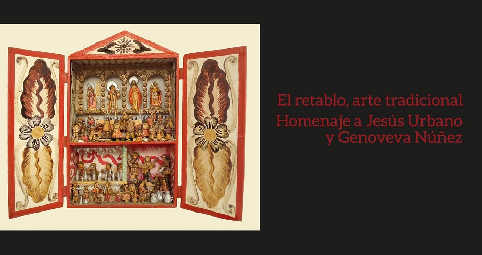 La exposición “El retablo, arte tradicional” se realiza en homenaje a uno de los grandes maestros del retablo Jesús Urbano y a su esposa doña Genoveva Núñez. El retablo ayacuchano tiene su origen en el llamado cajón San Marcos, objeto que incluía representaciones de santos y animales, y presidía el ritual de la herranza del ganado entre los criadores. Su presencia tenía una función mágico-religiosa para propiciar la fertilidad del ganado.