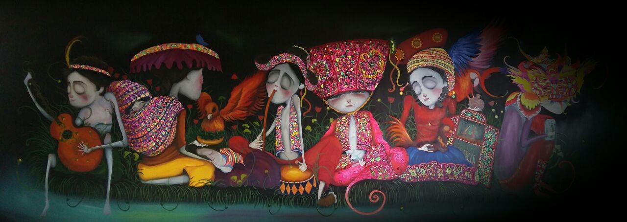 Muestra individual de Joan Alfaro reconocido en el presente año como artista representante de la Marca Perú, nos invita a ser cautivados por el exotismo de nuestros andes, entre colores pasionales, siluetas lúdicas y temáticas emocionales. Esta aventura surrealista coloca sobre el lienzo a personajes entrañables que nos muestran el deseo constante de aquellos pueblos que luchan por mantenerse vivos, poniendo frente a nuestros ojos el origen de nuestro pasado. Sus pinturas son el reflejo de una vida con tristezas y alegrías entretejidas como un laberinto, donde la única salida es el arte de color en medio de unas pinceladas lúdicas y estratégicas. De esta manera, la alianza entre recuerdos de pasajes dolorosos de la vida en los andes y el arte lúdico y alegre que escenifican las pinceladas de Joan Alfaro deja un sentido de pertenencia en cada una de sus obras. El artista, hace brotar de su imaginación y propias vivencias, y a través de un estilo costumbrista, la cultura latente de nuestro Perú, la misma que evoca nuestras raíces y orígenes.