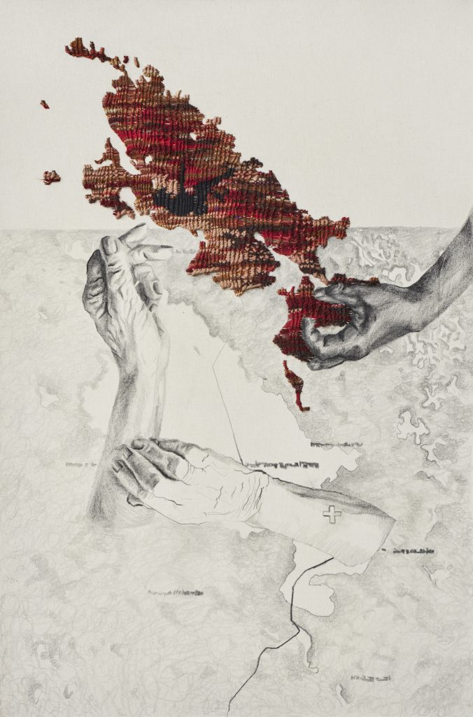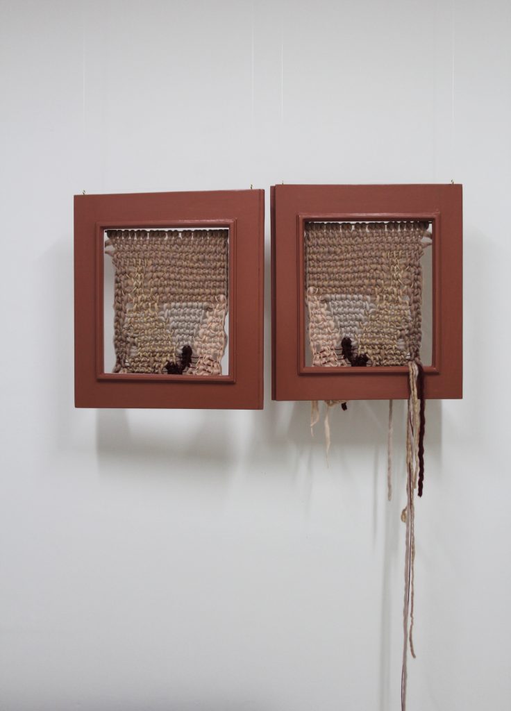Mediante el textil ellas se reconocen y reinventan. Tejen sin establecer límites con el deseo de conectar conceptos opuestos. Cada una de las artistas se aproxima a la noción de dualidad desde distintas perspectivas, las mismas que dialogan y se potencian unas a otras. Mientras Ivet explora la solidez y la fragilidad realizando piezas que unen tejido y cerámica, Fiorella indaga sobre lo privado y lo público con textiles que aluden a lo doméstico. Por último, Romina, a través del dibujo y el tejido, identifica aspectos de las construcciones culturales relacionados a la mujer.