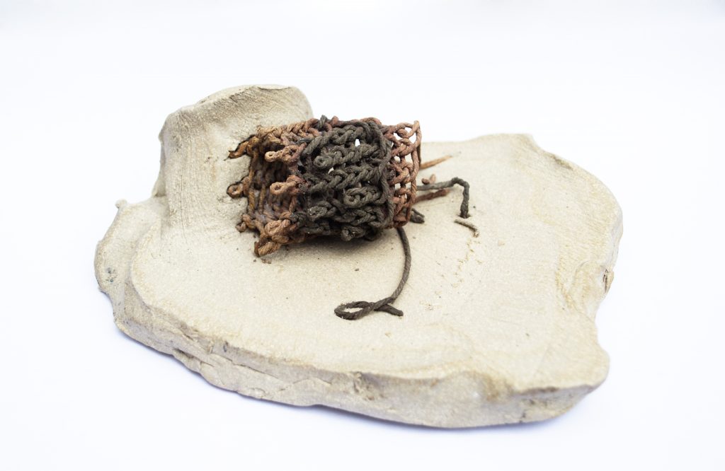 La técnica precolombina de tejido anillado, propia de la cultura Paracas (700 a. C. y 200 d. C.), es el punto de partida de las tres artistas/artesanas. Su preocupación está puesta en la época actual. A propósito de verse envueltas en esta problemática, con su trabajo se proyectan hacia el futuro a través de colocar su mirada en un pasado evadido. Así, proponen una muestra colectiva que surge de la intención de recuperar una técnica textil ancestral.