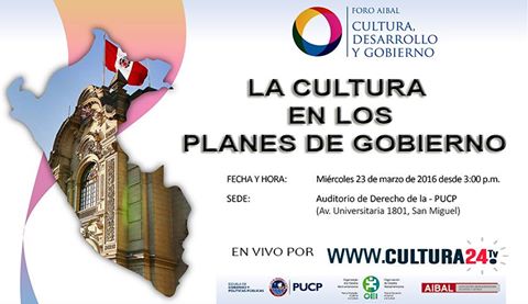 Con el fin de reflexionar sobre la importancia de la cultura y sus posibilidades de contribuir al desarrollo, la Asociación Iberoamericana de Artes y Letras (AIBAL), la Escuela de Gobierno y Políticas Públicas de la PUCP y la Organización de Estados Iberoamericanos (OEI) vienen presentando el Foro: Cultura, Desarrollo y Gobierno.
