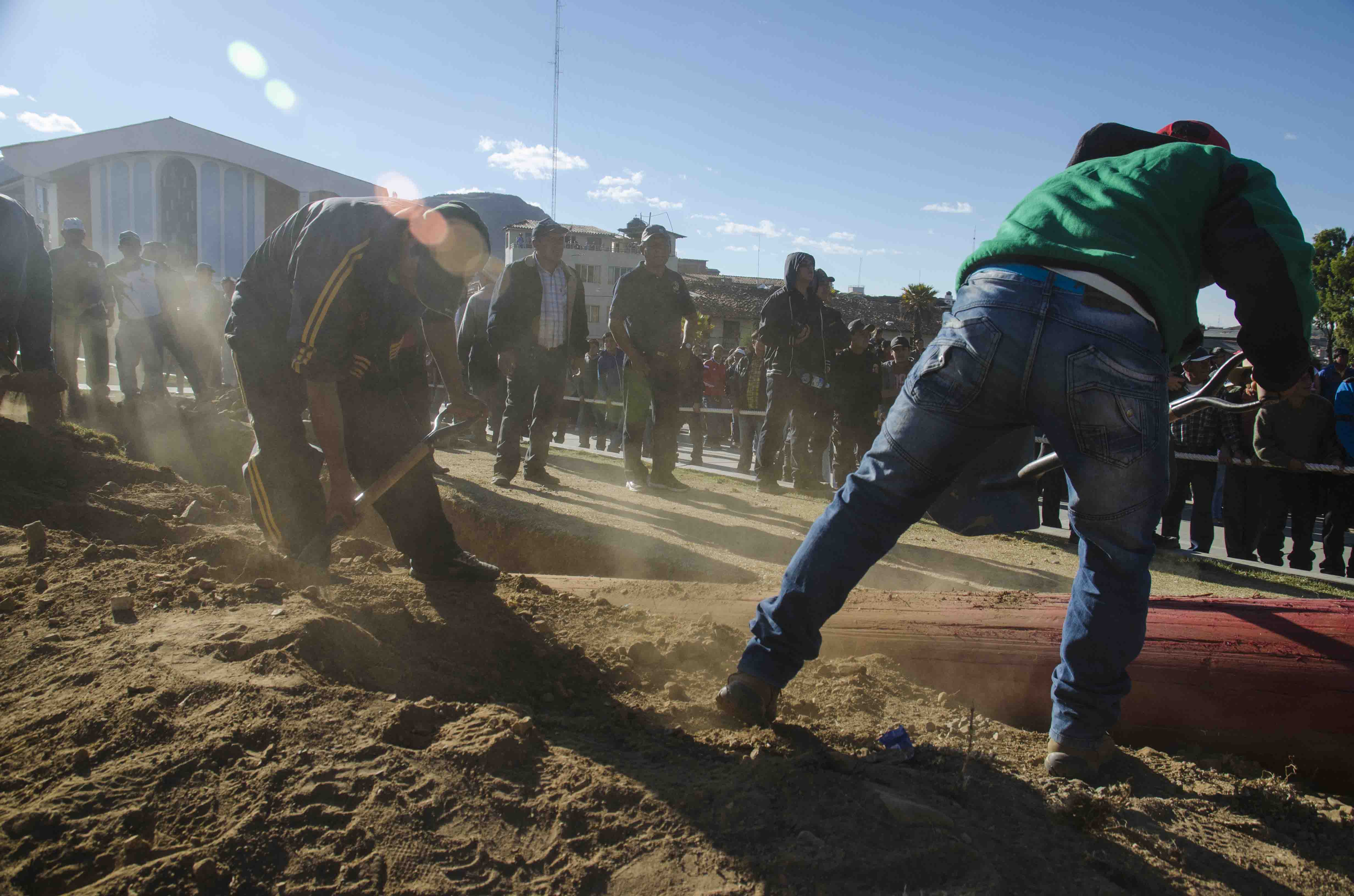 Foto 1: La bandera- Voluntarios sostienen la bandera hasta el momento en que sea propicio | | Foto 2: La base - Mientras el Gallardete se va erigiendo, la tierra y las piedras van cayendo sobre el para mantenerlo en su sitio | | Foto 3: La emoción - Esta dura labor física junto a la emoción del momento le arrancaron más de un grito a muchos | |