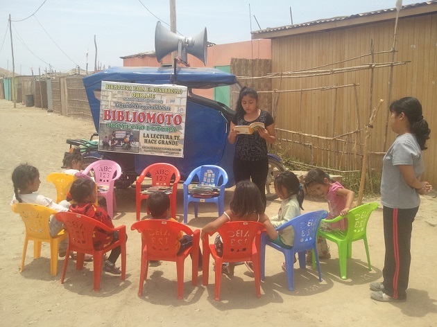 Heber Ocaña veía que en Madrid existían los bibliobuses y mientras limpiaba los parques, soñaba con montar uno parecido, pero con el transporte más popular de su país, las mototaxis, entonces pensó en la "BIBLIOMOTO".