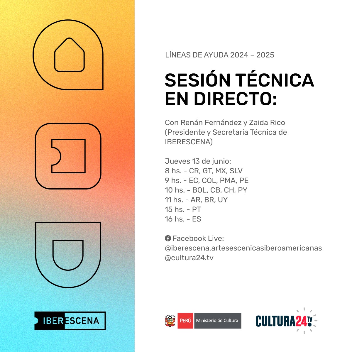El próximo 13 de junio a las 9:00 a.m. tendrá lugar la sesión en directo dedicada a la Convocatoria 2024 - 2025 del programa IBERESCENA.