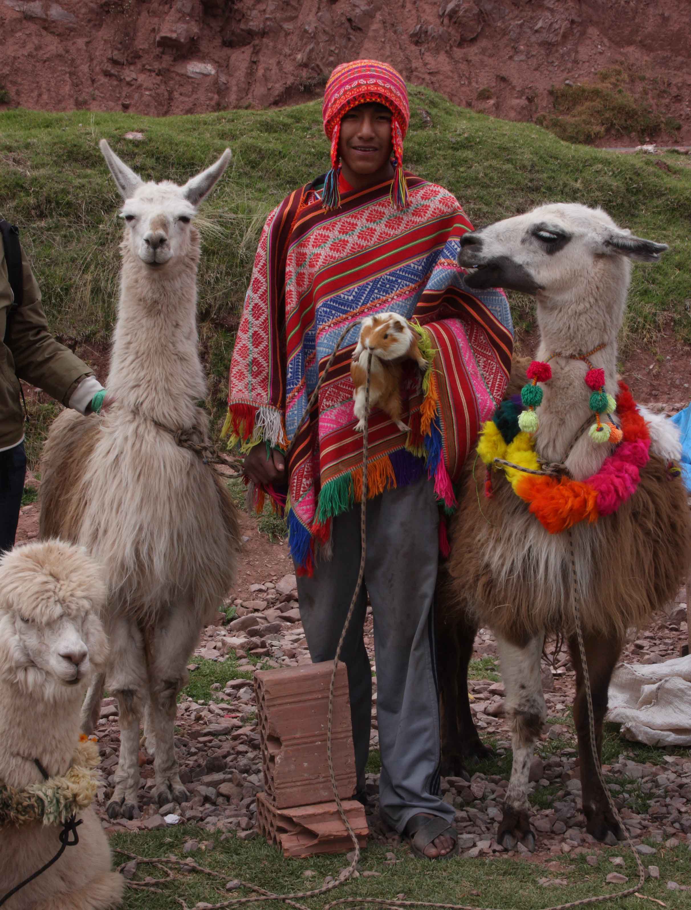 2 Retrato del Perú - Cuzco fotógrafo Ricardo Mesarina. esta foto muestra un retrato de un cuidadano indigena que posa con su atuendo típico y sus animales que le permiten el sustento.