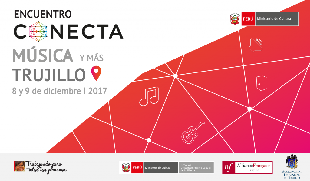 El Encuentro CONECTA es un espacio de intercambio y fortalecimiento de capacidades dirigido a emprendedores culturales de todo el país e impulsado por el Ministerio de Cultura. El 8 y 9 de diciembre en la ciudad de Trujillo se realizará el Encuentro CONECTA Música y contará con espacios de formación para todos los sectores de las industrias culturales y actividades enfocadas al sector de la música en específico. Se ofrecerán más de 20 actividades formativas que estarán a cargo de 5 especialistas internacionales y más de 8 nacionales.
