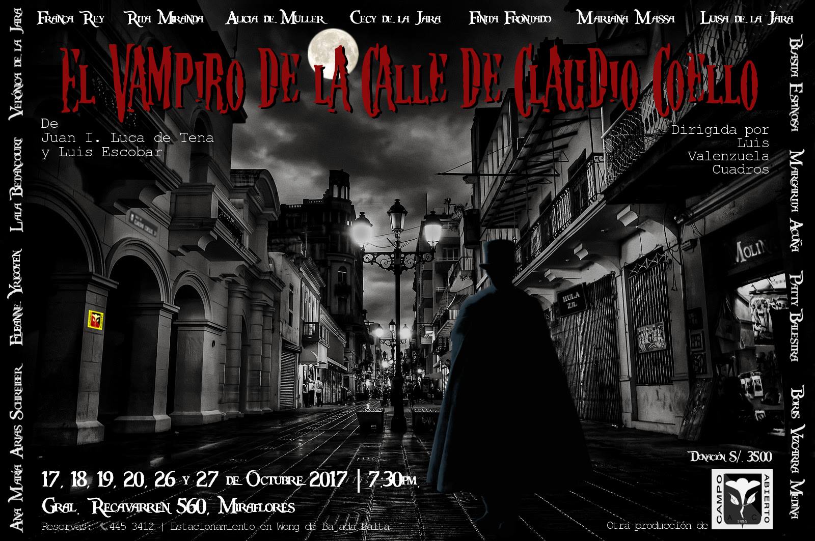 El taller de teatro de la Asociación Cultural Campo Abierto estrena este martes 17 de octubre la obra de teatro "El Vampiro de la calle" dirigida por Claudio Coello a las 7:30 p.m. en la misma sede.