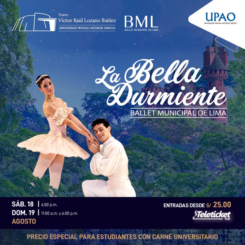 Tras una exitosa temporada en la capital, el Ballet Municipal de Lima se presentará en el Teatro Víctor Raúl Lozano Ibáñez de la Universidad Privada Antenor Orrego con la puesta en escena del clásico cuento “La Bella Durmiente”, bajo la dirección de la maestra Lucy Telge.