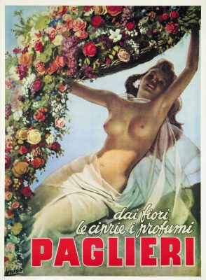 El cartel fue usado, durante largo tiempo, como un medio informativo, pero después de la Revolución Industrial y del uso de la técnica de la litografía, el cartel a colores invadió los medios artísticos y adquirió mayor relevancia a fines del siglo XIX. Se podrán apreciar obras de los más importantes ilustradores italianos de la época: Gino Boccasile, Adalberto Campagnoli, Leonetto Cappiello, Fortunato Depero, Marcello Dudovich, Federico Seneca, Filippo Romoli, y Armando Testa, entre otros. En el conjunto, se trata de un testimonio fidedigno de la eficacia del connubio entre arte y publicidad, en un formato simple y que los ciudadanos podían encontrar en la calle, transformada así en una especial y vivaz “galería para todos”.