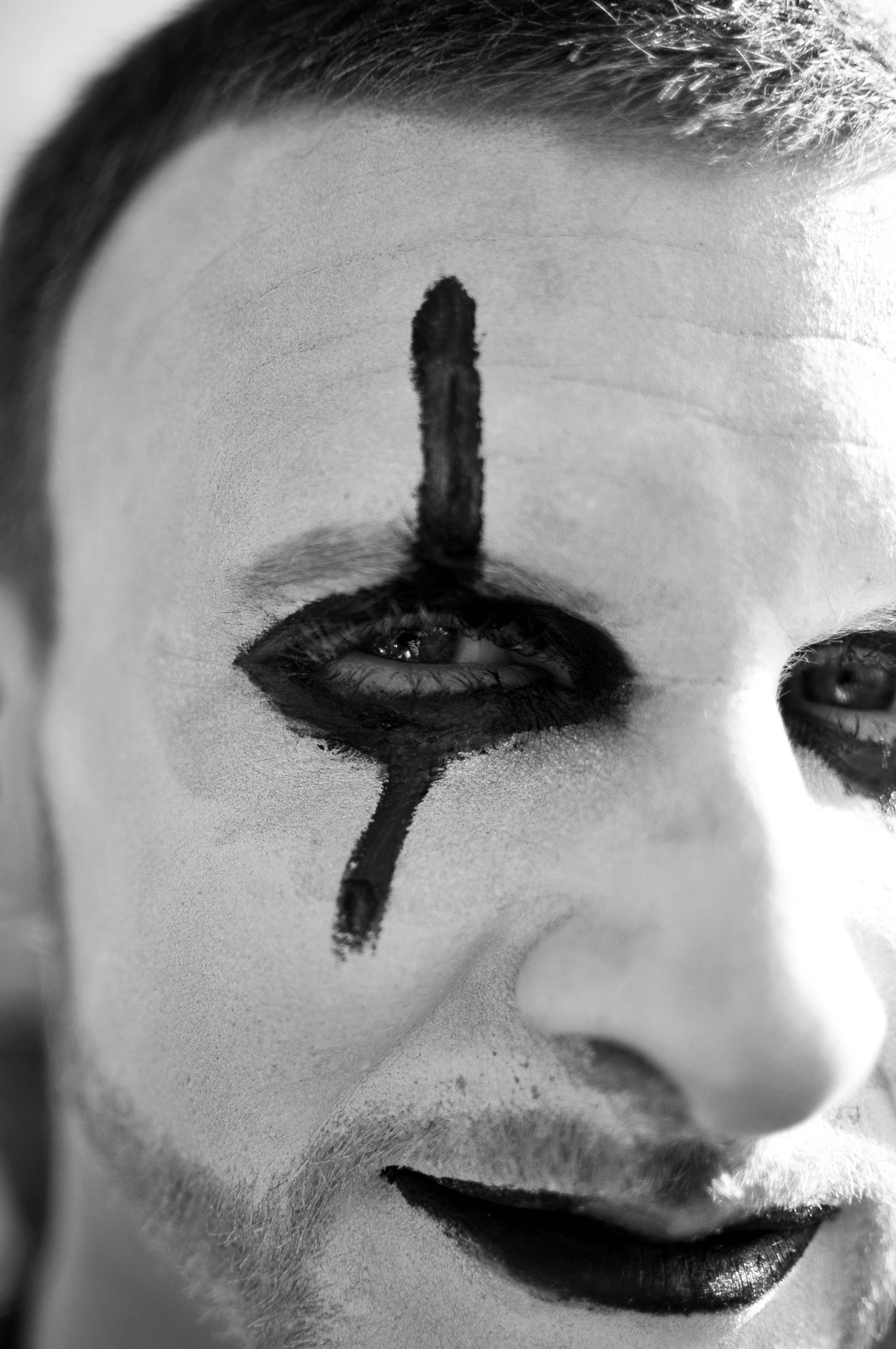 "LA ESQUINA" (2015) Foto tomada en la esquina de mi casa, distrito de Lince. Plano medio de los artistas de las calles, mirando la cámara para toma | | "MI-MO" (2012) Foto tomada en un viaje a Francia caminando por el muelle en Cannes. Un primer primerísimo plano de un mimo haciendo su arte en las calles, queriendo capturar su mirada y la intensidad que transmite | | "MIRADAS" (2015) Foto tomada en una calle principal del distrito de Barranco en Lima. Un plano medio de la mirada de una chica a la estatua en la pared | |