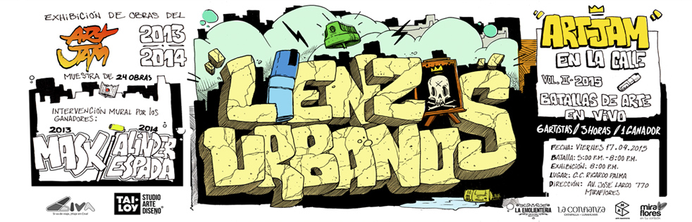 Este viernes 17 de abril en el CC Ricardo Palma de Miraflores se vivirá una verdadera fiesta de arte urbano. Arte Manifiesto invita a todos al Art Jam Vol. II (en la calle) que inicia desde 5:00 p.m. Luego se inaugurará la muestra de los ganadores de los años anteriores a las 8:00 p.m en la misma galería (la muestra va hasta finales de abril). ¡Todos están cordialmente invitados a esta fiesta de arte urbano!