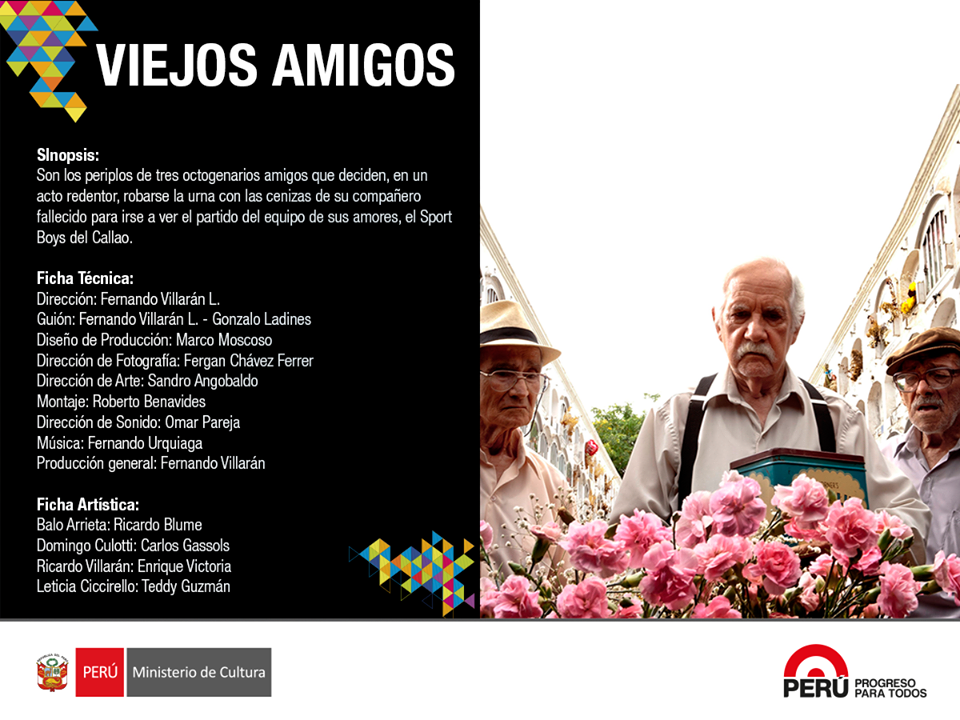 PATIO ABIERTO] Jueves 12 de febrero] Viejos amigos de Fernando Villarán, conoce los periplos de tres octogenarios amigos que deciden, en un acto redentor, robarse la urna con las cenizas de su compañero fallecido para irse a ver el partido del equipo de sus amores, el Sport Boys del Callao. Trailer.