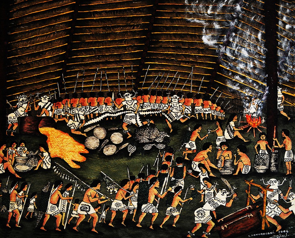 Mitos y Costumbres de los pueblos Uitoto y Asháninca. De los artistas amazónicos Santiago Yahuarcani y Enrique Casanto. Inauguración 27 de mayo