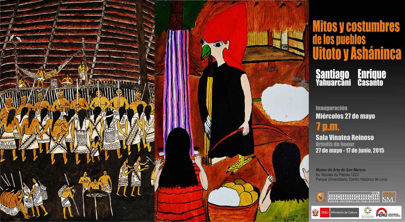 Mitos y Costumbres de los pueblos Uitoto y Asháninca, se denomina la muestra que el Museo de Arte del Centro Cultural de San Marcos en coordinación con el Ministerio de Cultura, inaugurará en el marco de la Semana de la Diversidad Cultural y Lingüística.