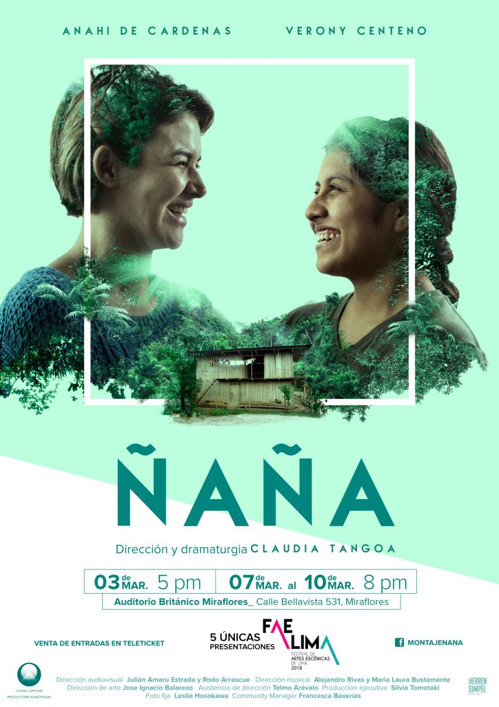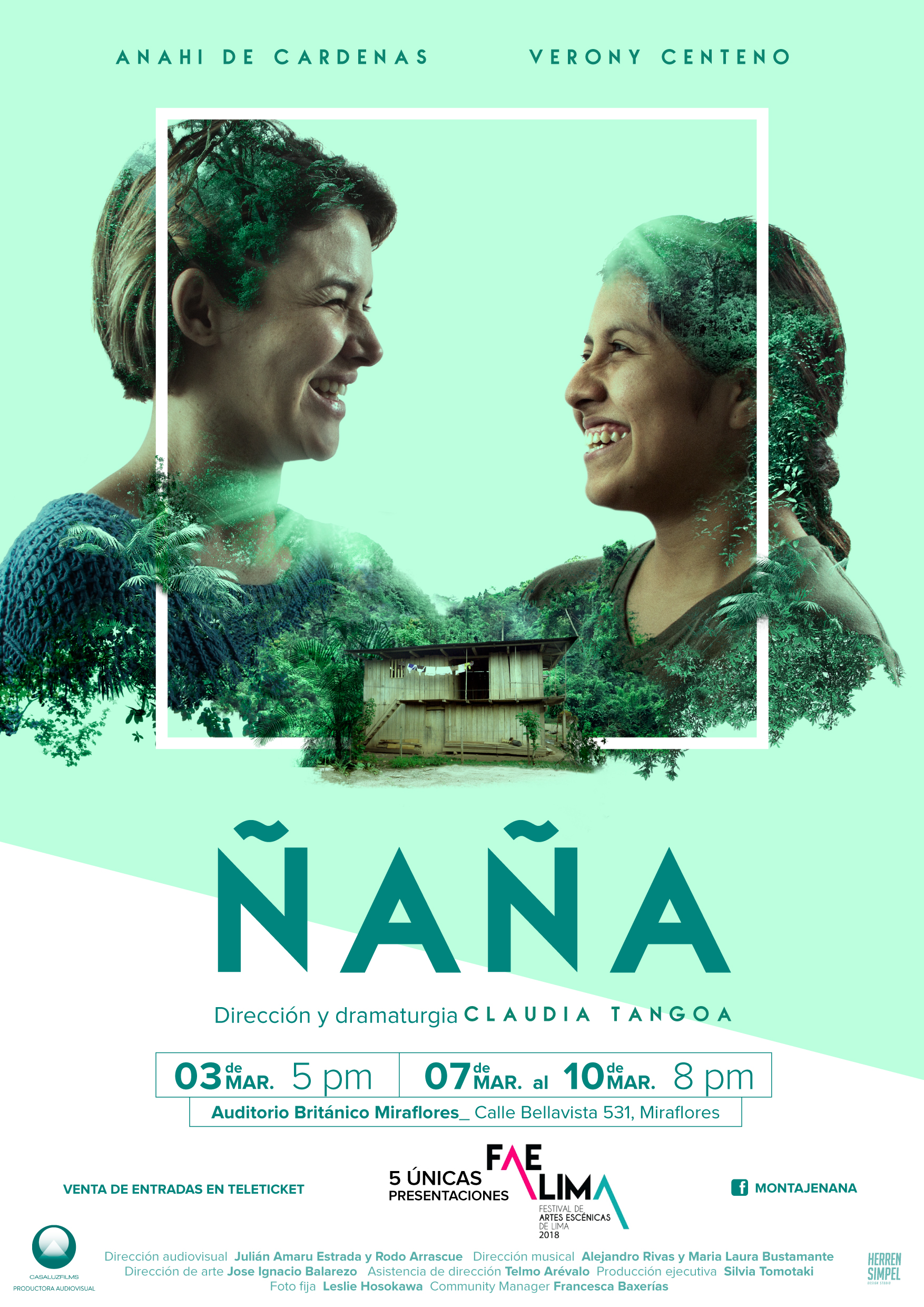 “Ñaña” es un montaje escénico interdisciplinario basado en un testimonio de la vida real, que se repondrá por 5 únicas funciones, dentro del marco del Festival de Artes Escénicas de Lima (FAE 2018) en el Auditorio Británico Miraflores, con las actuaciones de Anahí de Cárdenas y Verony Centeno, y la dirección y dramaturgia de Claudia Tangoa.