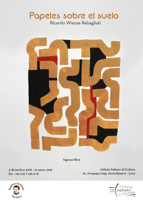 El Istituto Italiano di Cultura en colaboración con la Papelera Artesanal Don Bosco presentan la exposición "Papeles sobre el suelo", conjunto de tintas, acuarelas, témperas y lápices realizadas por el reconocido artista Ricardo Wiesse Rebagliati entre los meses de julio y agosto de este año. La muestra, que se presenta en la Galería del IIC (Av. Arequipa 1055, Santa Beatriz) abrirá al público el 7 de diciembre y continuará en exposición hasta el 12 de enero del próximo año.