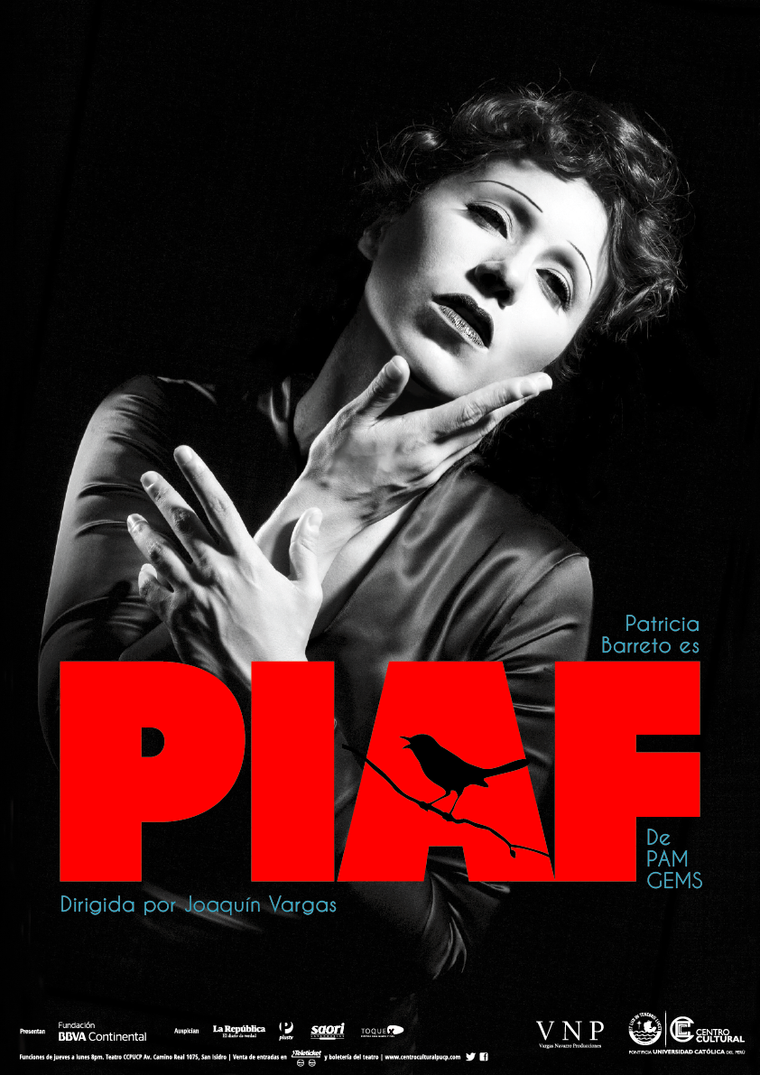 Continuando la celebración por los 100 de nacimiento de la cantante de origen francés Edith Piaf (1915-1963), la VNP Producciones y el Centro Cultural de la Pontificia Universidad Católica del Perú se complacen en presentar la reposición de uno de los éxitos teatrales más comentados del año, PIAF, escrita por la dramaturga inglesa Pam Gems y bajo la dirección de Joaquín Vargas. ¡Estás invitado!